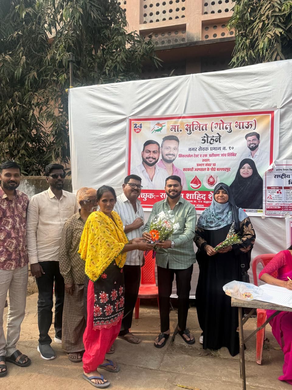 जन्मदिनाच्या उपक्रमातील दुसऱ्या कार्यक्रमात दिनांक २३ जानेवारी रोजी दुपारी २ वा. रक्त तपासणी शिबीर आणी शिकलसेल तापासणी शिबिराचे आयोजन प्रभाग १० मधील शासकीय रुग्णालया मागील परिसरात करण्यात आले होते.या शिबिरातून शिकलसेल बाबत व्यापक जनजागृती करण्यात आली.नगर सेवक सुमित डोहाणे यांच्या जन्मदिनी राबविण्यात आलेल्या अनोख्या उपक्रमाचे शहरात कौतुक होत असून,या उपक्रमा दरम्यान राष्ट्रवादी युवा काँग्रेस चे जिल्हाध्यक्ष इंजि.राकेश सोमाणी,नगर सेविका साजिया शाहीद शेख,नगर सेवक प्रणित सातपुते,