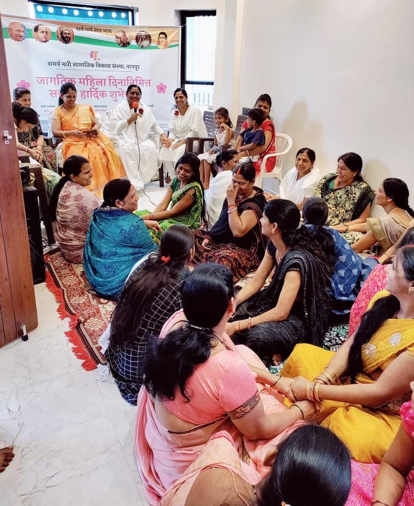 नागपूर-समर्थ नारी सामाजिक विकास संस्था, विश्वकर्मा नगर, वागदरा ईसासनी च्या वतीने जागतिक महिला दिनाचे औचित्य साधून एका विशेष कार्यक्रमाचे आयोजन करण्यात आले होते महिलांच्या सक्षमीकरणाचा संदेश देत, सामाजिक बांधिलकी आणि मनोरंजनाचा मेळ जोपासत कार्यक्रमाचे उद्घाटन प्रमुख पाहुण्या ब्रह्माकुमारी संगिता दिदी यांच्या हस्ते वृक्षारोपणाने झाली प्रसंगी “स्त्री ही निसर्गाप्रमाणेच सृजनशील आहे, तिचे संवर्धन करणे म्हणजे समाजाचे संवर्धन करणे होय” असे विचार यावेळी सुनीता दिदींनी व्यक्त केले, पर्यावरण रक्षणाचा संकल्प करत संस्थेच्या वतीने परिसरात विविध रोपांची लागवड करण्यात आली.